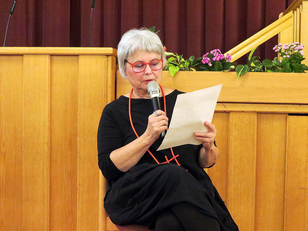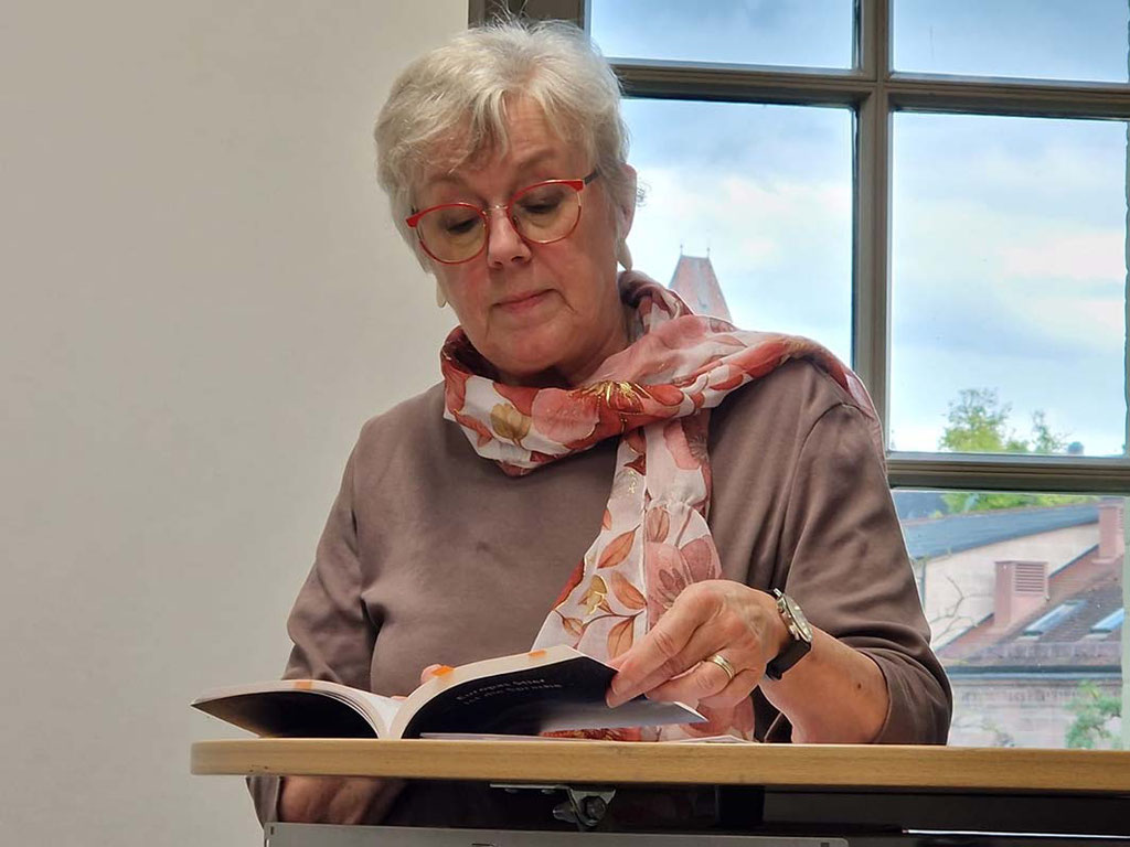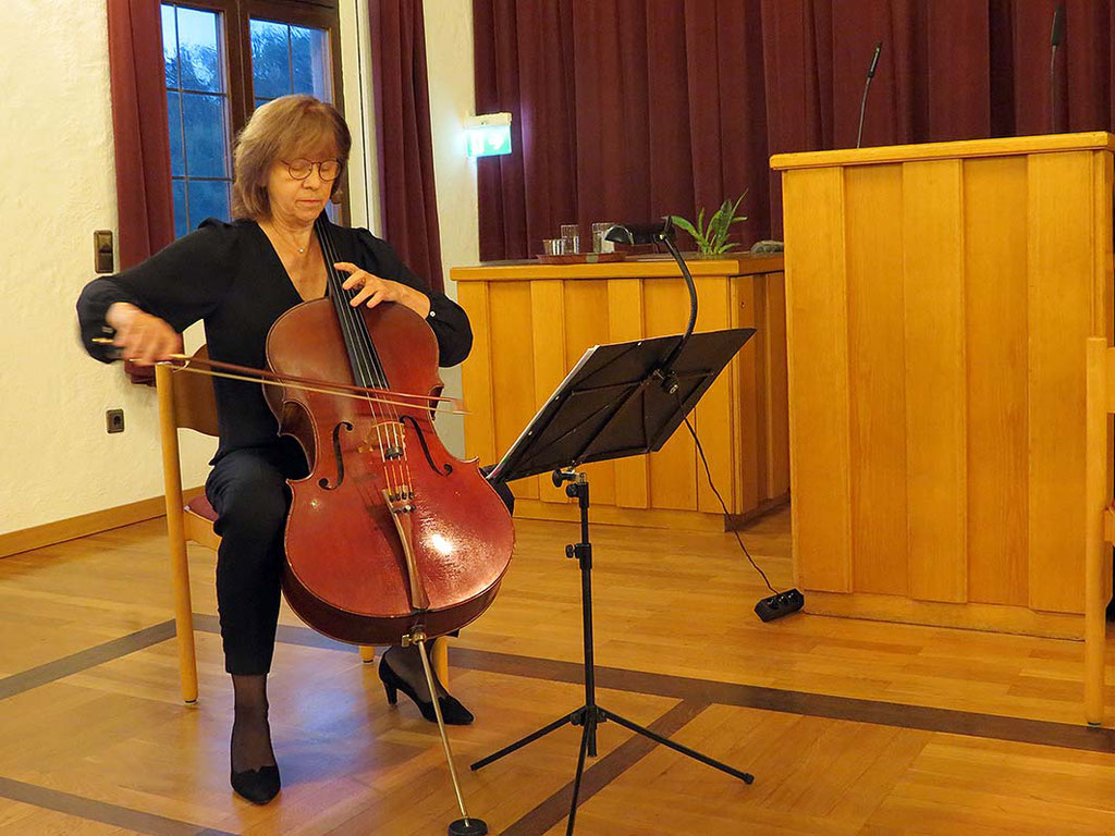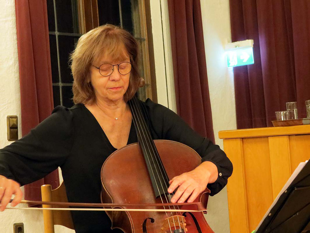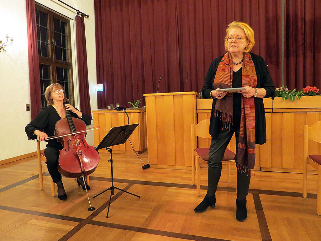 Der Abend stand dann wieder ganz im Zeichen der Internationalen Lesung in der Alten Kirche in Stein, in welcher die formal und inhaltlich eigenwillig-poetischen Lyrik- und Prosabeiträge von Iris Welker-Sturm (Deutschland), Erika Kronabitter (Österreich), Dato Barbakadse (Georgien) und Marcus Neuert (Deutschland) mit den improvisatorischen Celloklängen von Gunilda Wörner effektvoll kontrastierten, wobei die Ausführenden von Ursula Teicher-Maier jeweils kundig und einfühlsam vorgestellt wurden.