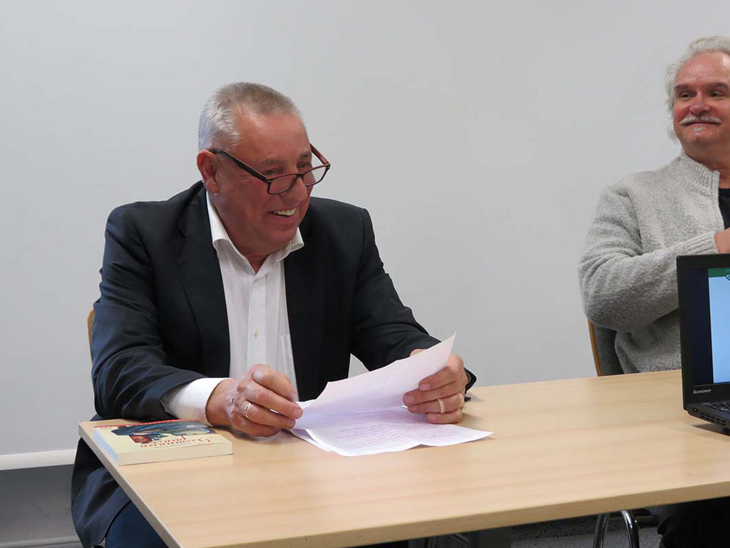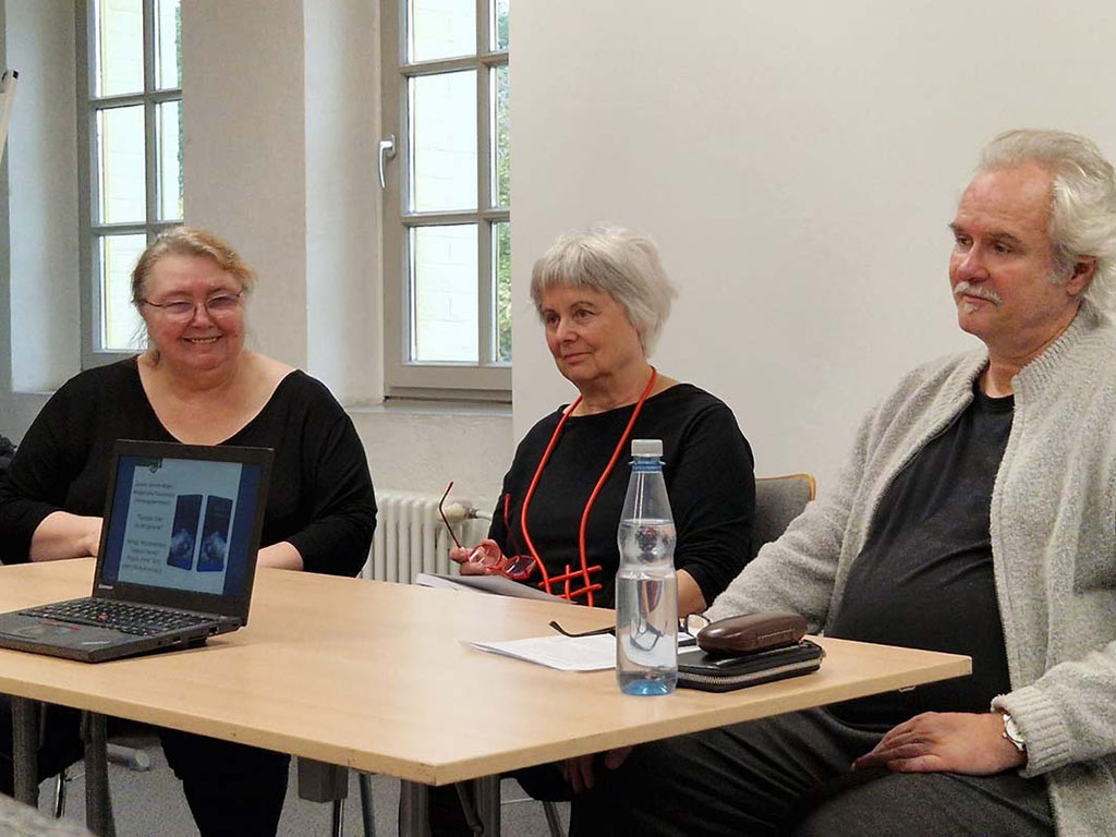 Am Samstagnachmittag ging es weiter mit der Vorstellung der Neuerscheinungen der anwesenden KOGGE-Mitglieder - insgesamt acht Kolleginnen und Kollegen präsentierten ihre Bücher in kurzen Lesungen, moderiert von KOGGE-Vizepräsident Marcus Neuert: Charlotte Ueckert, Alessandra Brisotto, Tatjana Kuschtewskaja, Harald Gröhler, Irma Shiolashvili, Dagmar Dusil, Sybille Fritsch und Malgorzata Ploszewska.