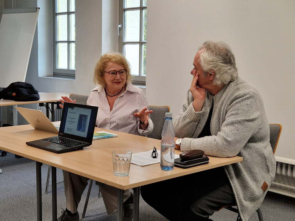 Die KOGGE-Jahrestagung in Stein von 20.-22.09.2024 war ein voller Erfolg mit zahlreichen, zumeist auch öffentlich zugänglichen Veranstaltungen: am Eröffnungsabend in der Akademie Faber-Castell, der von KOGGE-Präsident Uli Rothfuss eröffnet wurde, konnten so manche Teilnehmende in Erinnerungen an frühere Treffen schwelgen, denn Präsidiumsmitglied Malgorzata Ploszewska hatte hunderte von Fotos zusammengetragen, die auf die Leinwand projiziert wurden. Dazu gab es Grußworte vom PEN-Club Deutschland sowie vom niederdeutschen PEN, lyrische Texte von Malgorzata Ploszewska und Ursula Teicher-Maier und ein Impulsreferat von Marcus Neuert.